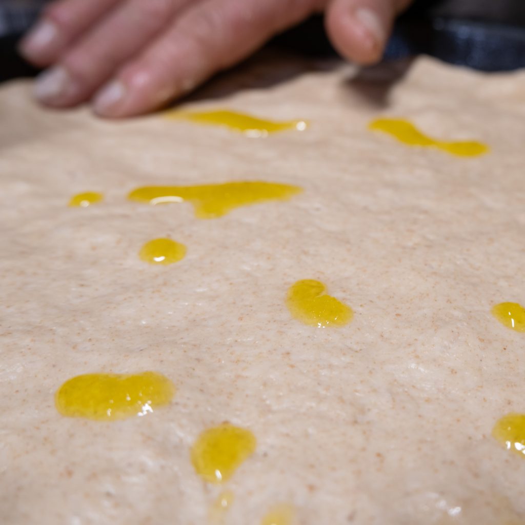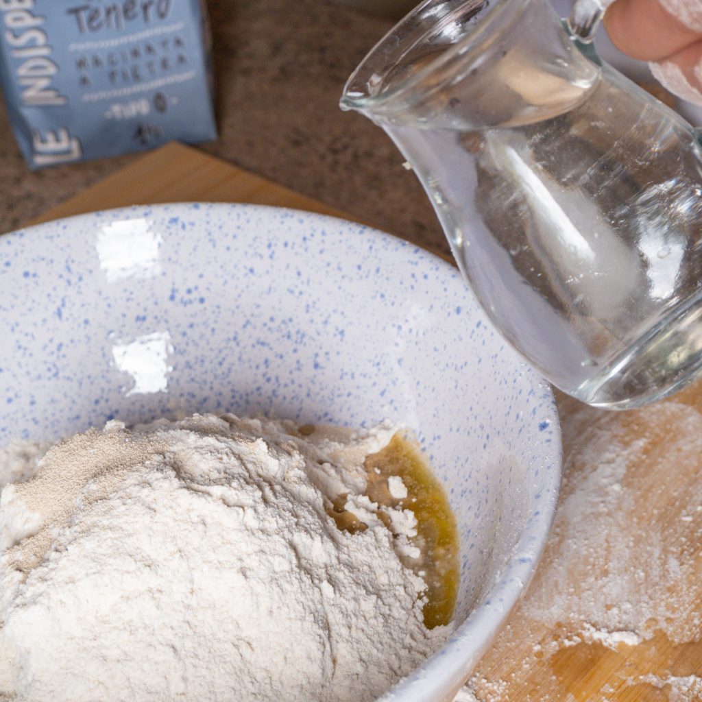 - Unite l’olio e parte dell’acqua, iniziando ad impastare;