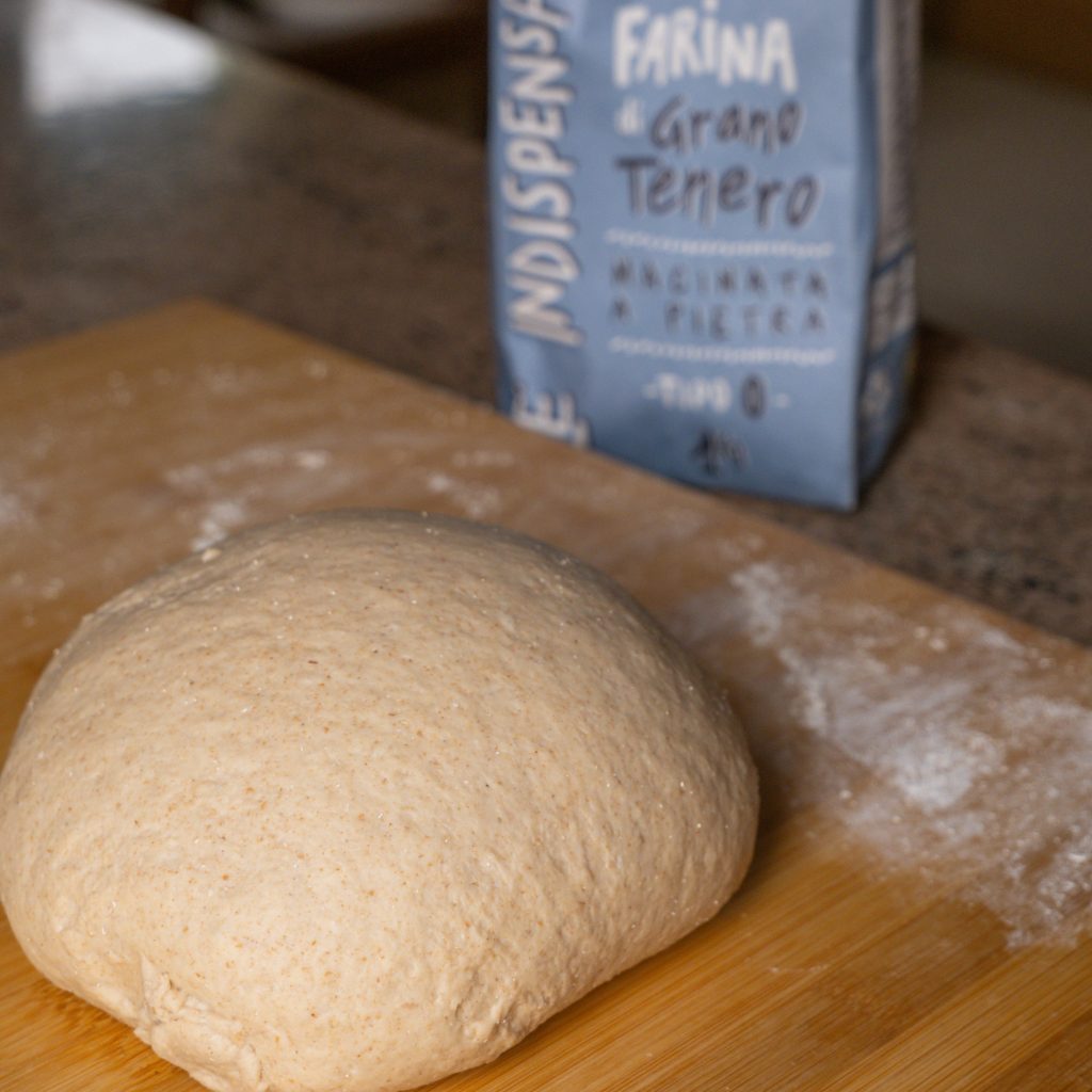 - Dopo il primo riposo, fate due pieghe all’impasto (piegando i bordi verso il centro);